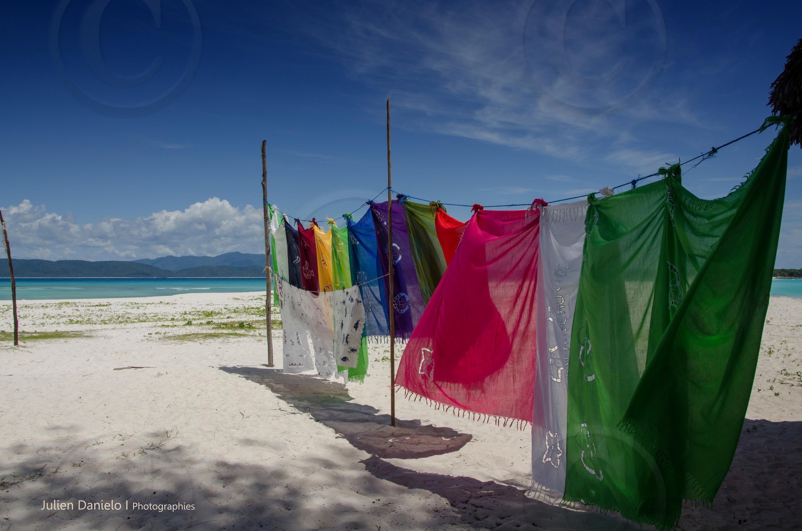 Description | Nosy Iranja - Cette île est tout simplement magnifique, située à une soixantaine de kilomètres au sud de Nosy-Be, elle est juste à côté de la Grande Terre et est constituée de deux îlots reliès par une bande sableuse. Les femmes de ce village de pêcheurs installé sur une des deux îles vivent de l'activité touristique en proposant des nappes et des paréos issus de l'artisanat malgache.. |