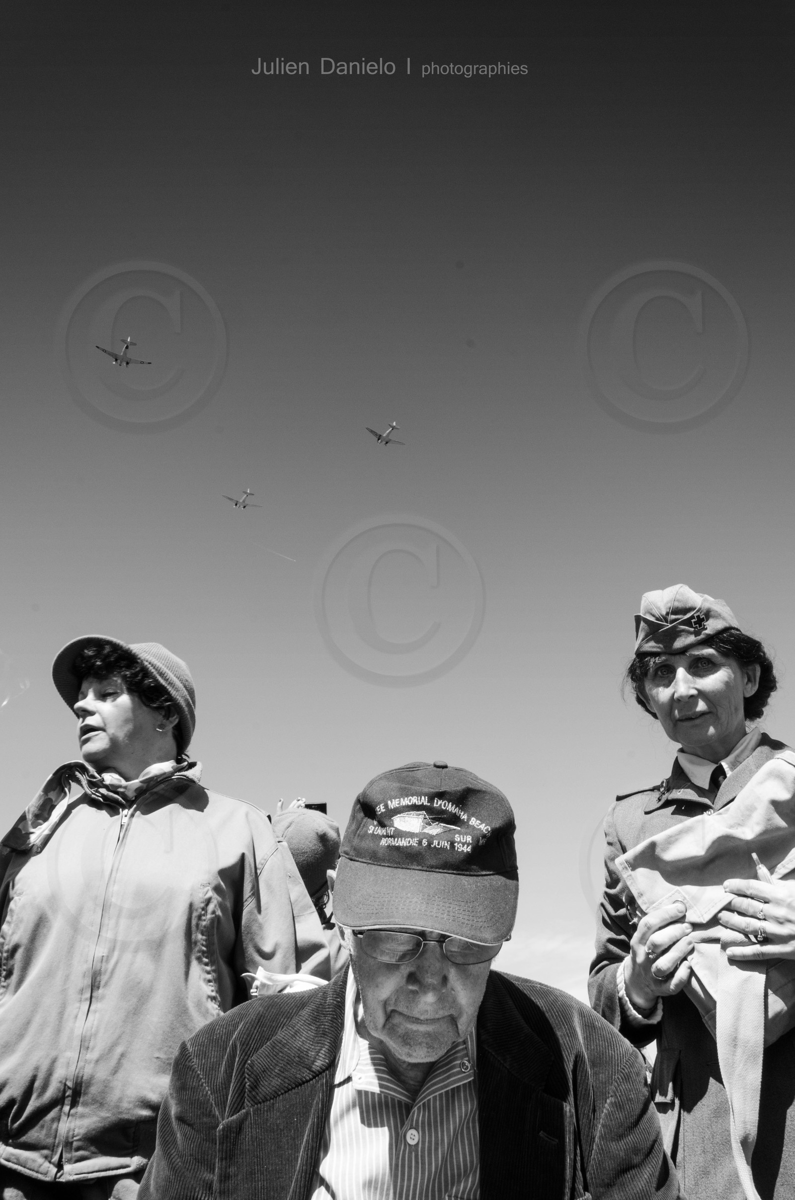 DescriptionEdward Tierney avait 21 ans en 1944, lorsqu'il a participé au Débarquement. Il appartenait à la 9 e Air Force. Son épouse, Jean avait 22 ans et était Flight nurse. "Je pilotais un C47 et j'étais affecté à la logistique, raconte Edward Tierney, en français. Je n'ai pas eu le choix de mon affectation. Une liste était faite et on faisait ce que l'on nous disait de faire. Il n'y avait pas de différences entre les catégories de pilote. Nous avons eu de svols difficiles et des avions abattus. Il a fallu attendre que la première pîste d'atterrissage soit construite pour pouvoir atterrir. C'est à dire le 9 juin 1944. J'ai fait mon premier vol le 13 juin et j'ai attérri à Saint-Laurent-sur-Mer. Je transportais du matériel, des munitions mais j'ai participé aussi à l'évacuation des blessés". ..source du témoignage : http://triggertimeforum.yuku.com/topic/6365/9th-AF-C47-pilot-Edward-Tierney-returns-to-Normandy-#.U5W35dgRAeE